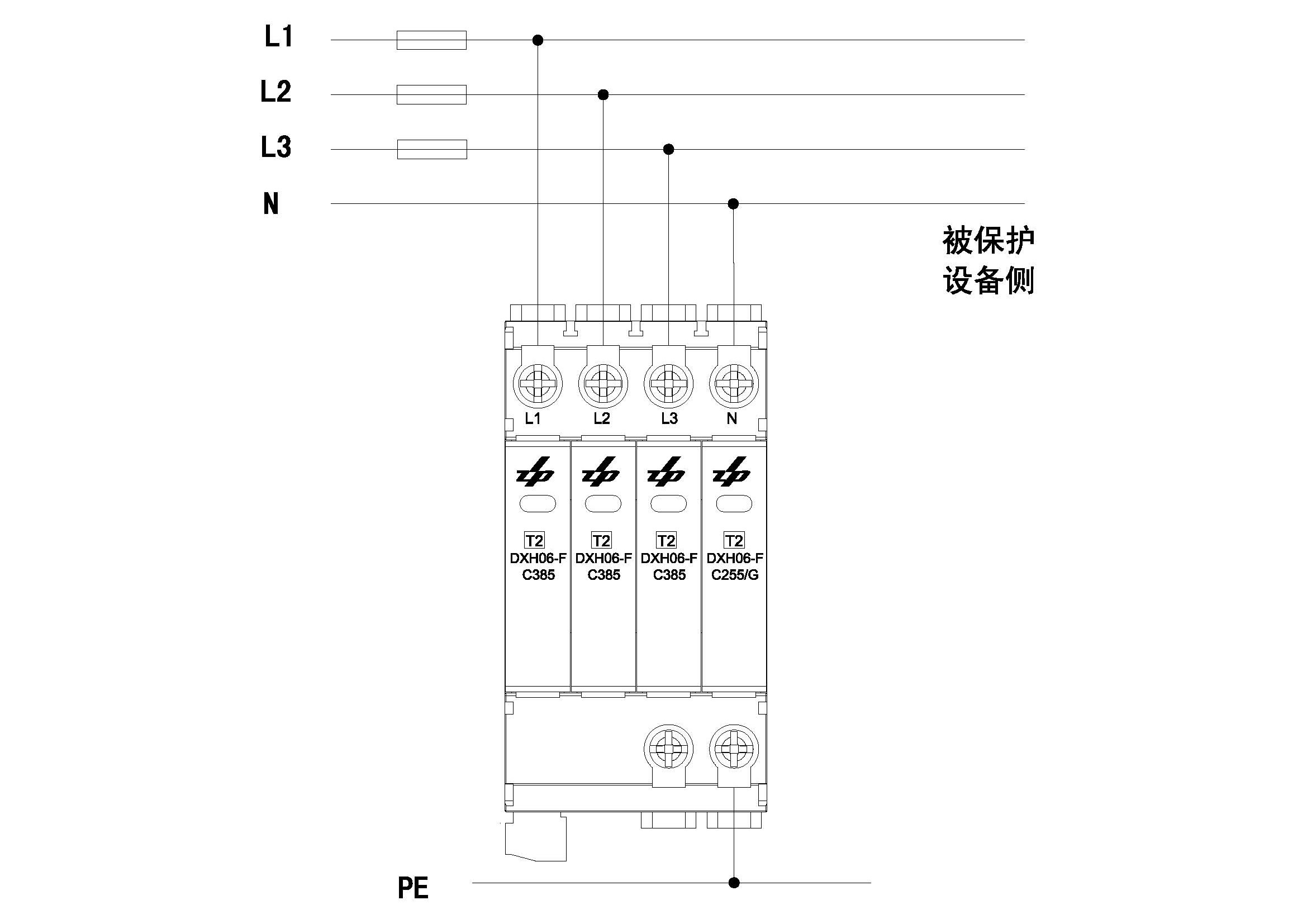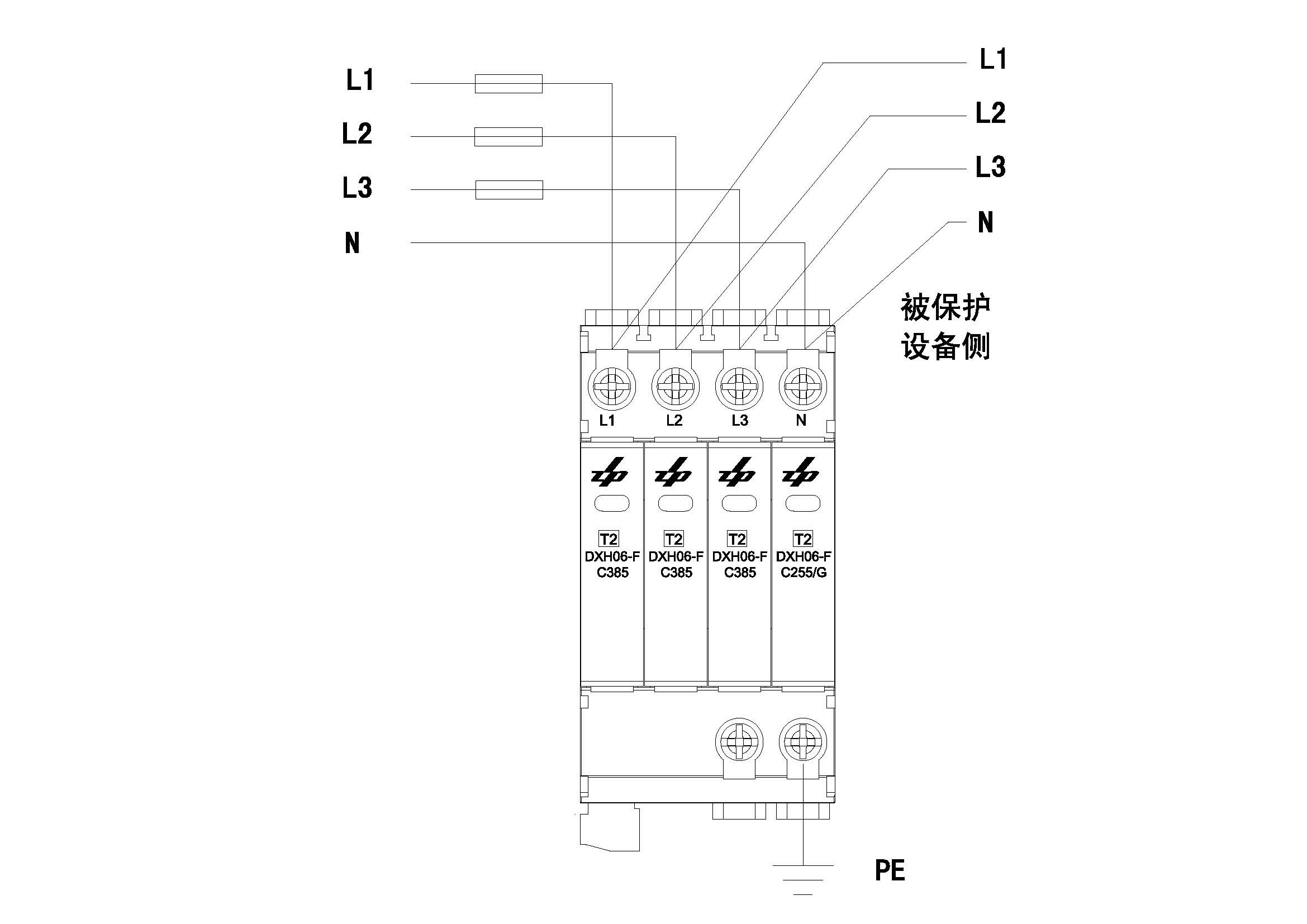DXH06-FC385/3+1電涌保護器,適用于220/380Va.c.電壓系統(tǒng),配電系統(tǒng)以及終端設(shè)備的電涌保護,應(yīng)安裝在防雷區(qū)1(LPZ1)和防雷區(qū)2(LPZ2)的界面處。