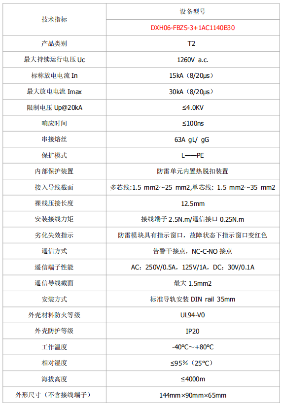 DXH06-FBZS-3+1AC1140B30是帶有遙信報(bào)警裝置的電涌保護(hù)器。產(chǎn)品適用于風(fēng)電行業(yè)4~12MW以上風(fēng)機(jī)變流系統(tǒng),變流器電壓為1140V的電源設(shè)備防雷以及操作過(guò)電壓的保護(hù)。