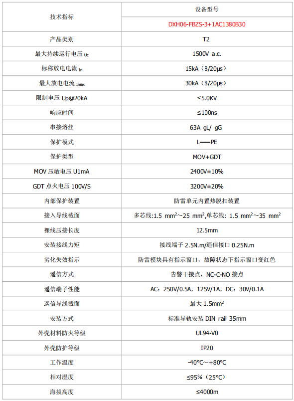 • DXH06-FBZS/3+1AC1380          15-30kA  1500V 3P+N      中普風(fēng)電防雷器