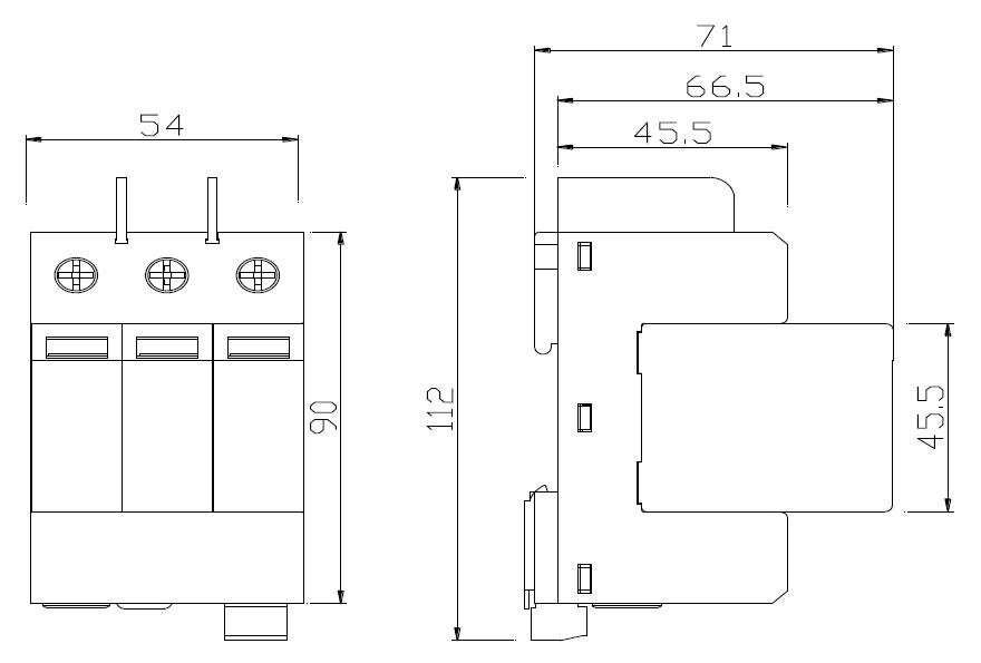 • DXH06-F/3DC1500        20-40kA 直流 1500Vdc 3P        中普直流光伏防雷器