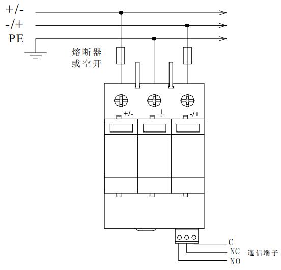 6.2  防雷器前端應(yīng)串聯(lián)合適的熔斷器或空開。