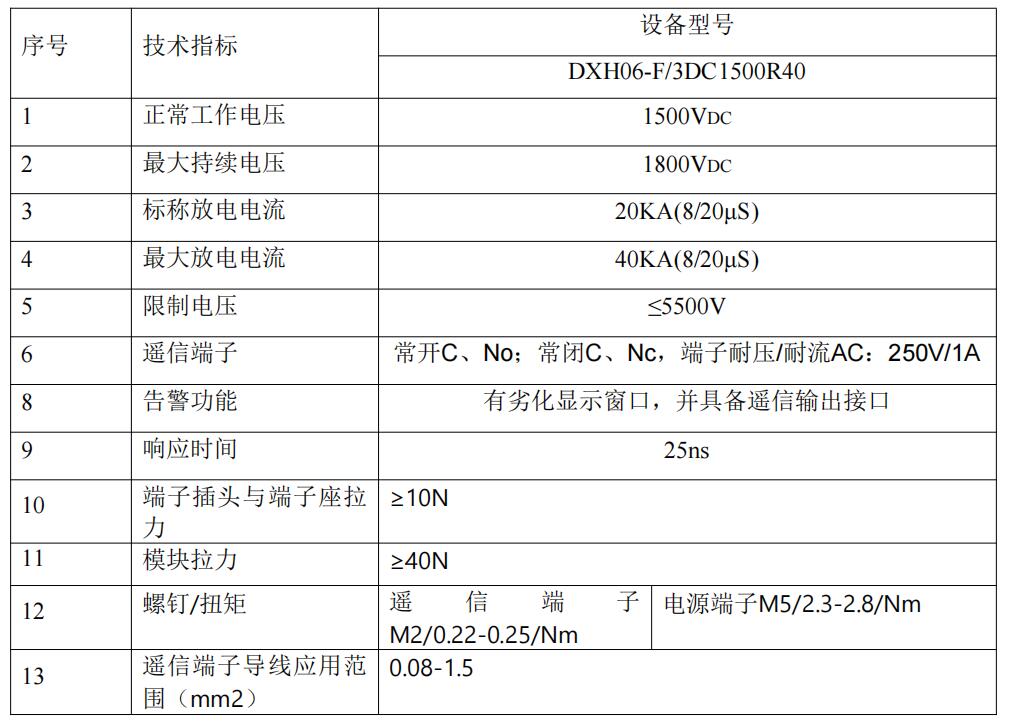 DXH06-F/3DC1500R40是帶有遙信報(bào)警裝置、帶有隔離板的直流防雷模塊。產(chǎn)品主要用于光伏發(fā)電設(shè)備的防雷以及操作過電壓的保護(hù)。