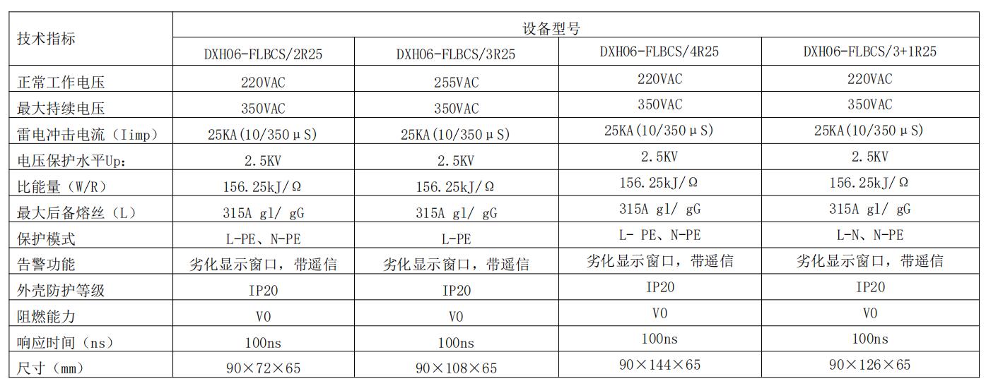 • DXH06-FLBCS系列         T1+T2:25kA/50kA 350V        中普BC組合式電源防雷器